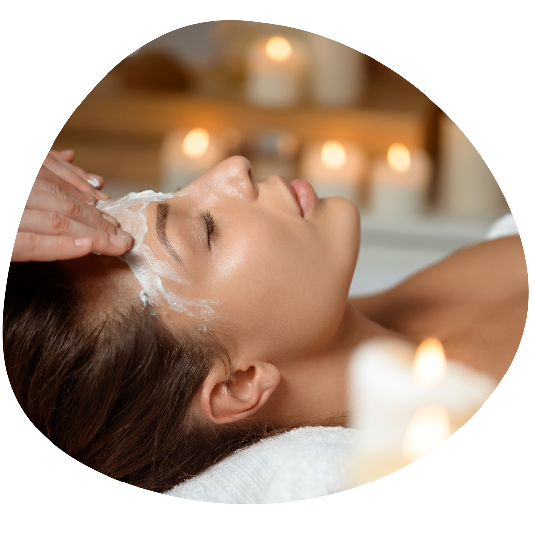 Massage: gesamter Kopfbereich, Gesicht, Hals, Dekolletee, Nacken, Schultern;